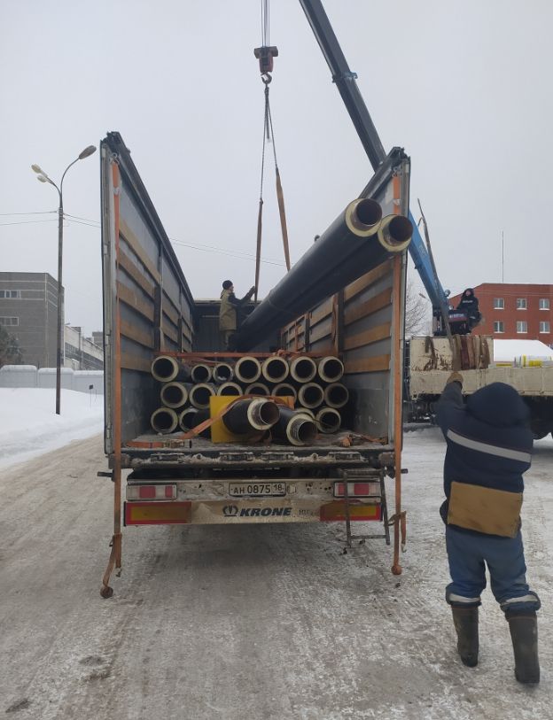 Разгрузка трубы в ППУ изоляции в Ижевске